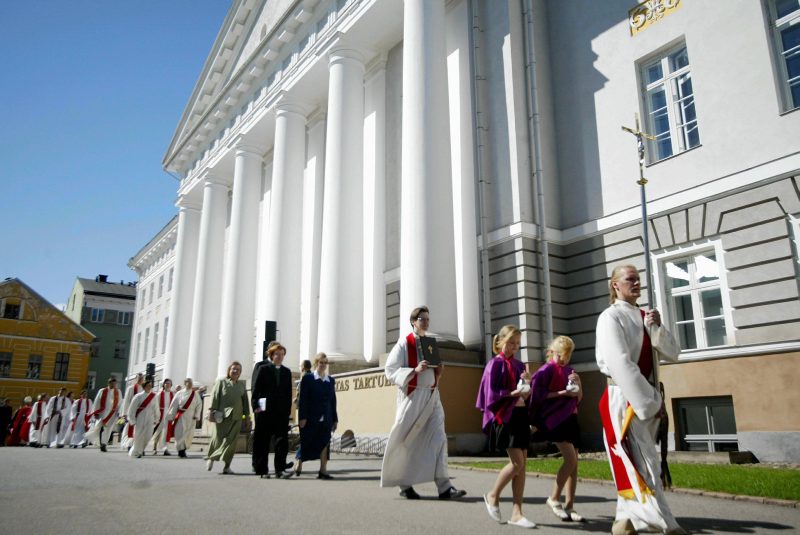 Reipal sammul ja ühisel meelel saabub protsessioon Raekoja platsile: esireas (vasakult) õpetaja Raino Kubjas Laiuselt, aasta vaimulik Ants Leedjärv Kullamaalt, praost Avo Kiir ja diakon Tauno Toompuu Virumaalt.Möödunud laupäeval tähistas luterlik kirik Tartus Eesti vaba rahvakiriku 90. aastapäeva. Päeva alustati vaimulike ja koguduseliikmete piduliku rongkäiguga läbi kesklinna.Kirikukellade helisemise lõppedes oli suursugune ...